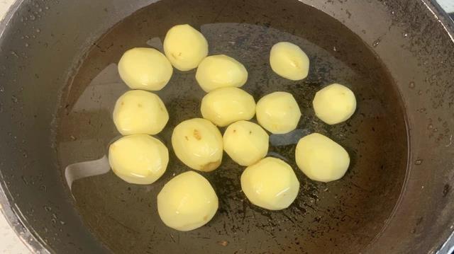 下一步,煮土豆。锅里装水,扔进去小土豆,开大火煮上15分钟左右就熟了。想偷懒也可以用蒸锅蒸,效果一样。煮好后捞出来,晾干水分。这一步很重要!土豆表面有水,一下油锅就噼里啪啦溅油,厨房搞得跟战场似的,收拾起来也麻烦。