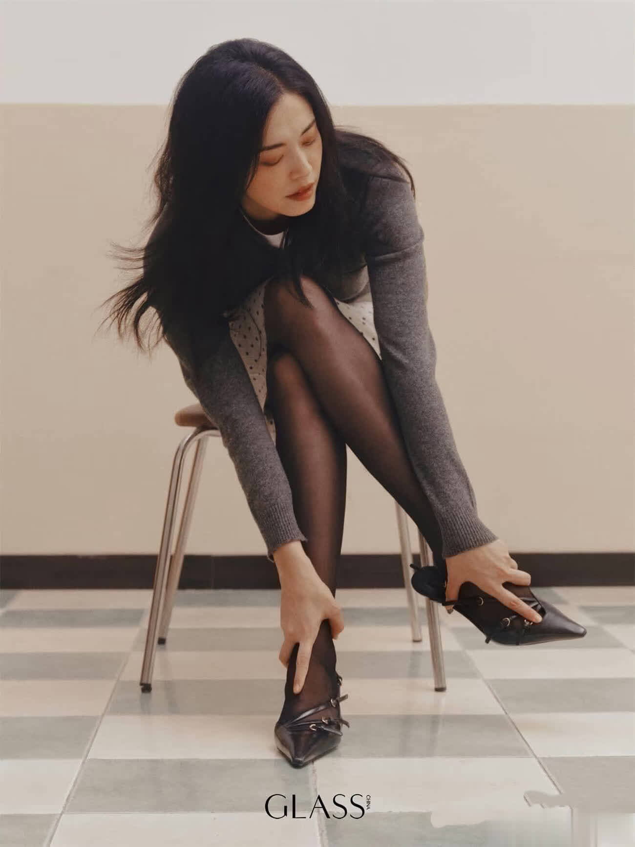 相对日常的穿搭,配上一双尖头高跟鞋,也能展现出女性特有的时尚范。
