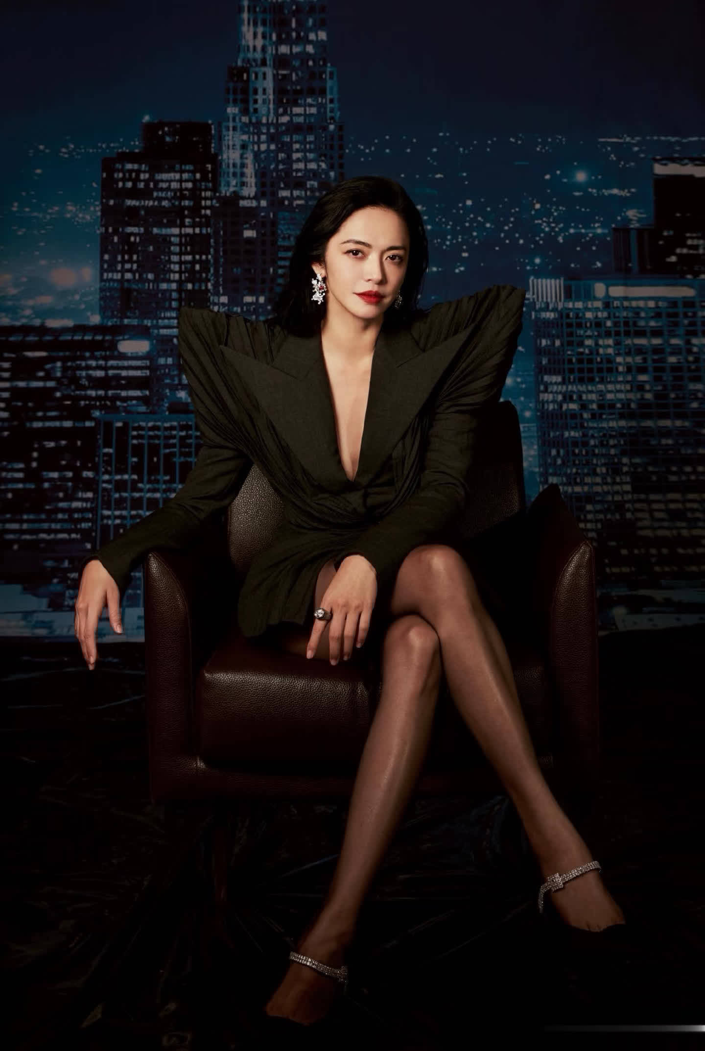 廓形立体剪裁的深V西装裙,有一种与生俱来的霸气。姚晨尝试真空穿搭、飒美有霸气。高级感的耳环特别闪耀,充斥着女性魅力。