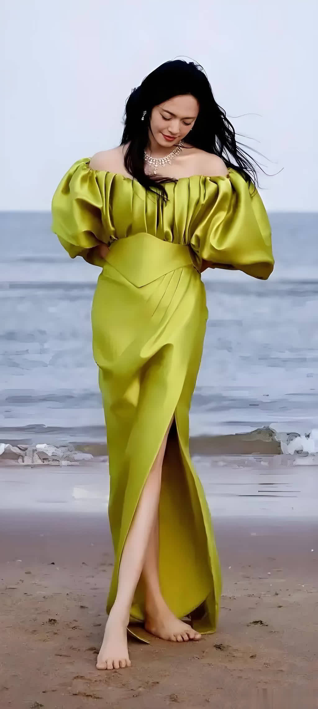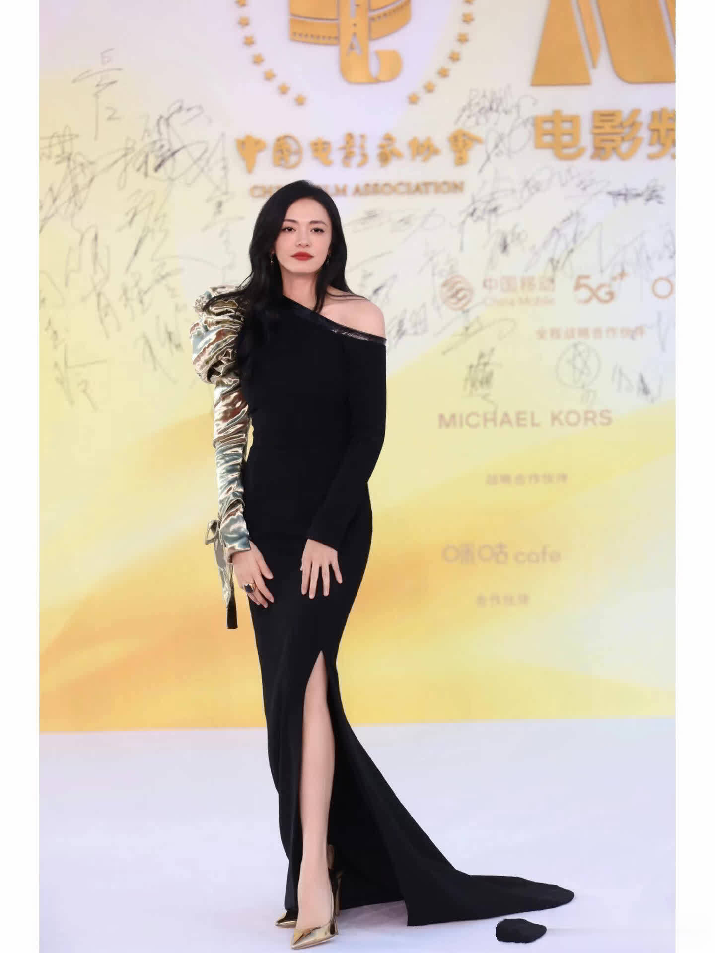 哪怕是一件黑色单肩礼服,搭配开衩的裙摆、就可以勾勒出曼妙的身姿。姚晨眉眼中的风情,于裙摆摇曳间交相呼应。